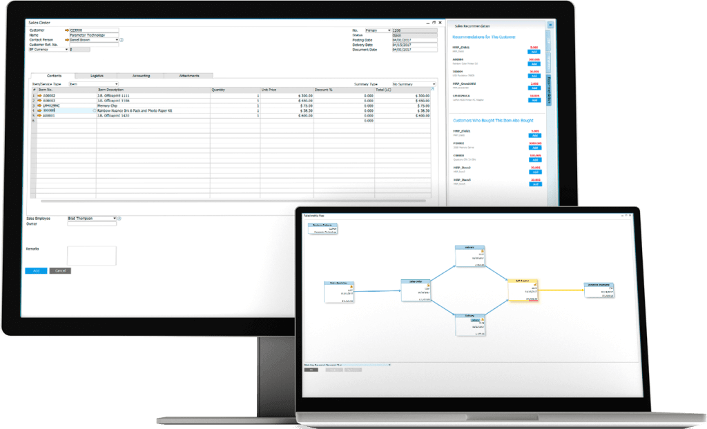 นอกจากนี้ SAP Business One ยังตระหนักถึงความสำคัญของระบบลูกค้าสัมพันธ์ โดยมีเครื่องมือช่วยให้คุณสามารถบริหารจัดการกระบวนการ การขายและระบบลูกค้าสัมพันธ์ได้อย่างมีประสิทธิภาพ เริ่มตั้งแต่การ ติดต่อลูกค้า การขาย รวมถึงบริการหลังการขาย