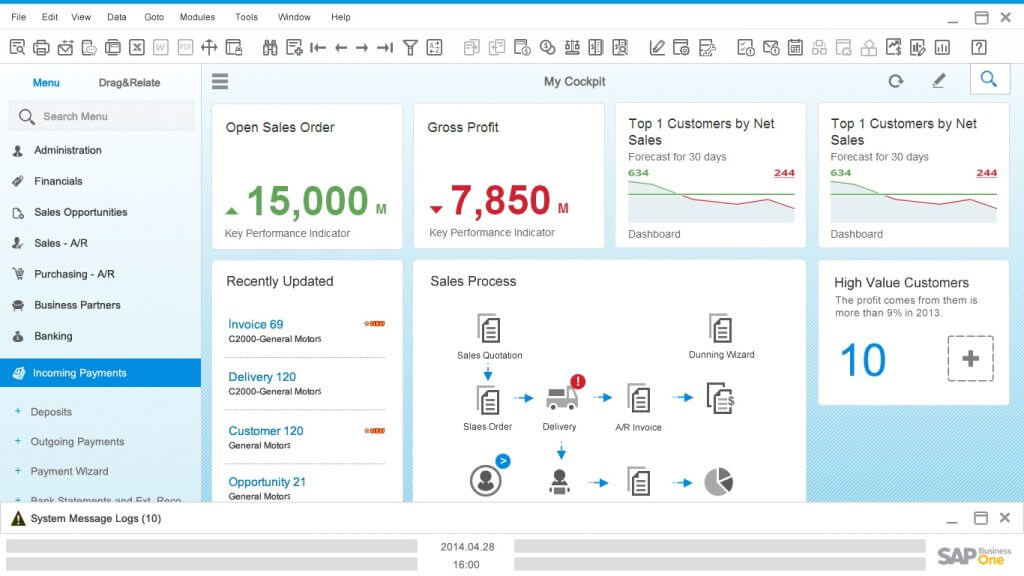 ภาพรวมของธุรกิจที่ชัดเจน ช่วยให้คุณสามารถควบคุมทุกอย่างได้อย่าง ง่ายดาย ในเวลาที่ธุรกิจของคุณกำลังเติบโต มันเป็นเรื่องยากที่จะมองเห็นภาพที่ ชัดเจนในธุรกิจของคุณได้ทันที เนื่องจากข้อมูลที่กระจัดกระจายอยู่ตาม แอพพลิเคชั่นต่างๆ หรือตามสถานที่ต่างๆ SAP Business One ถูก ออกแบบสำหรับบริษัทขนาดเล็กและขนาดกลาง มีความยืดหยุ่นตามที่ ต้องการ เพิ่มศักยภาพทางธุรกิจและสามารถใช้งานได้อย่างง่ายดาย