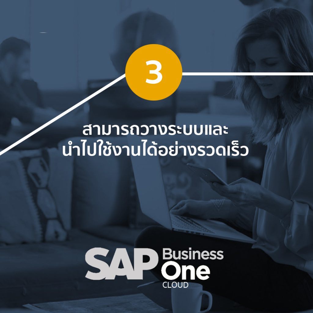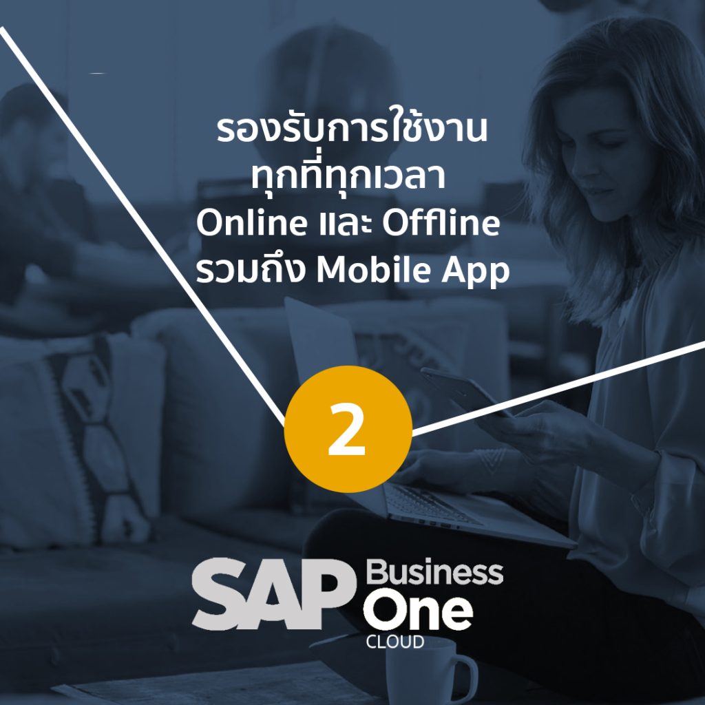 ด้วยระบบคลาว์ด สิ่งที่มากไปกว่านั้นพนักงานสามารถใช้งานได้ทันทีตั้งแต่วันแรกและเมื่อ ธุรกิจของคุณเติบโตขึ้นคุณสามารถปรับเปลี่ยนและขยาย SAP Business One ได้ตามความต้องการที่เพิ่มขึ้น อีกทั้ง คุณยังบริหารจัดการธุรกิจแบบเคลื่อนที่ด้วยแอปพลิเคชั่น SAP Business One สำหรับโทรศัพท์มือถือ คุณสามารถควบคุมทุกสิ่งได้จากทุกที่ ทุกเวลา ผ่านโทรศัพท์มือถือ