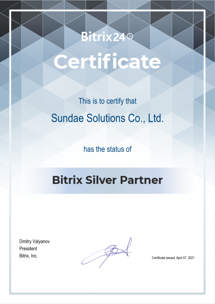 บริษัท ซันเด โซลูขันส์ จำกัด ผู้ให้บริการซอฟต์แวร์สำหรับธุรกิจ ได้รับการคัดเลือกให้เป็นพันธมิตร (Partner) ชอง Bitrix24 ในระดับ Silver จากผลดำเนินงานและผลงานในการวางระบบ Bitrix24 ในปีที่ผ่านมา