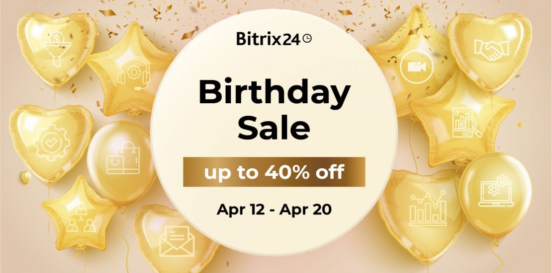 Promotion! Bitrix24 Birthday Sale ฉลองวันกิดของ Bitrix24 รับส่วนลดสูงสุด 40% ตั้งแต่วันนี้ถึงวันที่ 20 เมษายนและมีผลกับผู้ใช้ Bitrix24 ทั้งหมด (เก่าและใหม่)