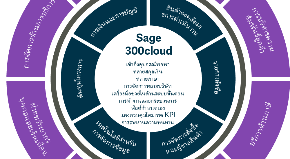 แอปพลิเคชั่นในการจัดการทางธุรกิจและการบัญชีอย่าง The Sage 300cloud นั้นมอบประสิทธิภาพในการทำงานสูงและสามารถไว้วางใจได้ คุณจึงมีโอกาสในการเพิ่มผลกำไรและประสิทธิภาพในการแข่งขันในตลาดของคุณได้ Sage 300cloud ได้รับการออกแบบมาเพื่อจัดการต้นทุนรวมในการเป็นเจ้าของให้ได้น้อยที่สุด ซึ่งเป็นโซลูชั่นในการจัดการธุรกิจแบบเบ็ดเสร็จและมีความยืดหยุ่น จุดเด่นของ Sage 300cloud นั้นคือการเป็นโซลูชั่นที่จัดการระบบการเงิน การดำเนินงาน การโยกย้าย การขายและการบริหารความสัมพันธ์ลูกค้าแบบบูรณาการ (หรือ CRM) ได้อย่างแข็งแกร่ง