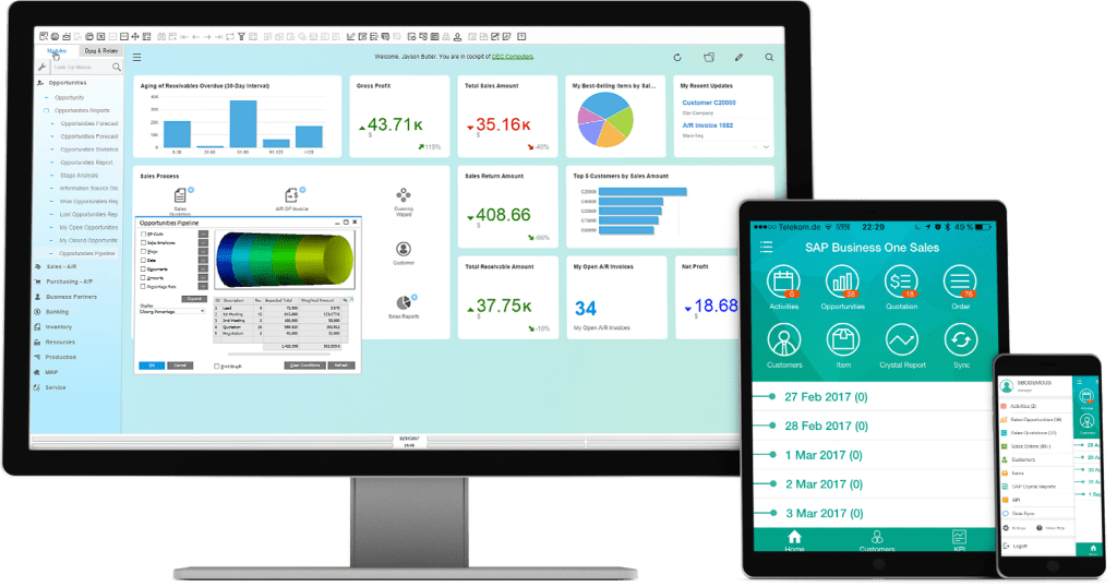 SAP Business One เป็นระบบที่ช่วยจัดการเชื่อมโยงการทำงานของหน่วยงานต่างๆ ภายในองค์กรเข้าด้วยกัน และฟังก์ชั่นใช้งานง่าย และสามารถช่วยรองรับการเติบโตของธุรกิจได้เป็นอย่างดี นอกจากนี้ SAP Business One ยังช่วยให้ผู้บริหารได้รับข้อมูล จากหน่วยงานต่างๆ ในองค์กร เพื่อนำไปประกอบการตัดสินใจทางธุรกิจได้เร็ว ทันต่อเหตุการณ์ และมีประสิทธิภาพ ช่วยเพิ่มขีดความสามารถในการแข่งขันทางธุรกิจ โอกาสและการวางแผนได้ดียิ่งขึ้นนอกจากนี้ SAP Business One ยังสามารถติดตั้งและเริ่มใช้งานได้ในเวลาที่สั้น ราคาคุ้มค่า ไม่จำเป็นต้องมีพนักงานที่มีความรู้เฉพาะด้านไว้ในองค์กรหลายท่านเพื่อดูแลระบบ