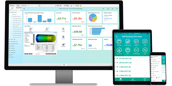 • รันด้วย SAP Business One, SAP Business One, เวอร์ชันสำหรับ SAP HANA หรือโซลูชัน SAP Business One OnDemand เป็นระบบ Backend สำหรับการใช้งานทางธุรกิจ