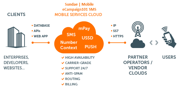 ด้วยการเชื่อมต่อกับบริการคลาวด์บนมือถือ องค์กร สถาบันการเงิน นักพัฒนา ผู้ค้าปลีก และนักการตลาดสามารถเข้าถึงลูกค้าได้อย่างง่ายดาย โดยไม่คำนึงถึงประเทศและเครือข่ายมือถือ